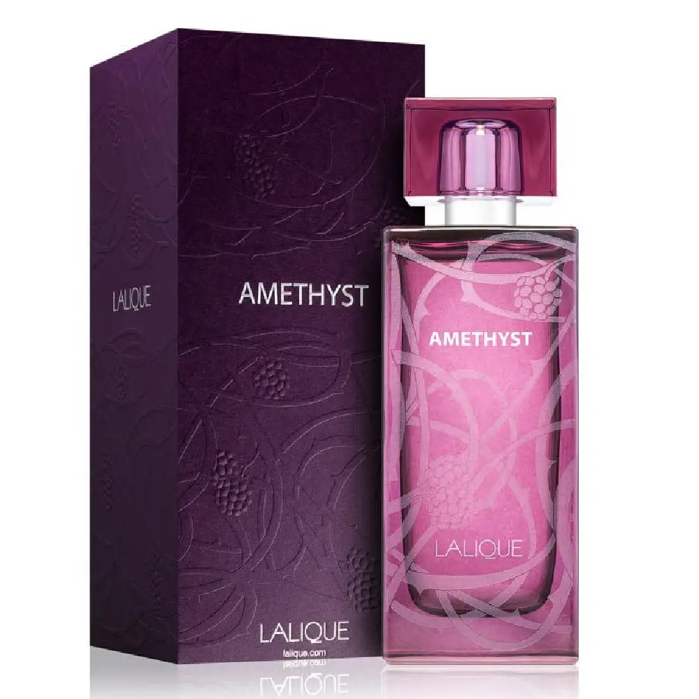 Lalique Amethyst عطری میوهای، گلی و کمی چوبی است که با نتهای توتها، گل صدتومانی و مشک، حسی از زنانگی، انرژی و ظرافت را منتقل میکند. این عطر با ماندگاری و پخش بوی خوب، انتخابی مناسب برای استفاده روزانه و تمام فصول است. طراحی شیشه آن نیز زیبا و الهام گرفته از سنگ آمتیست، تجسمی از لوکس بودن و خاص بودن است.